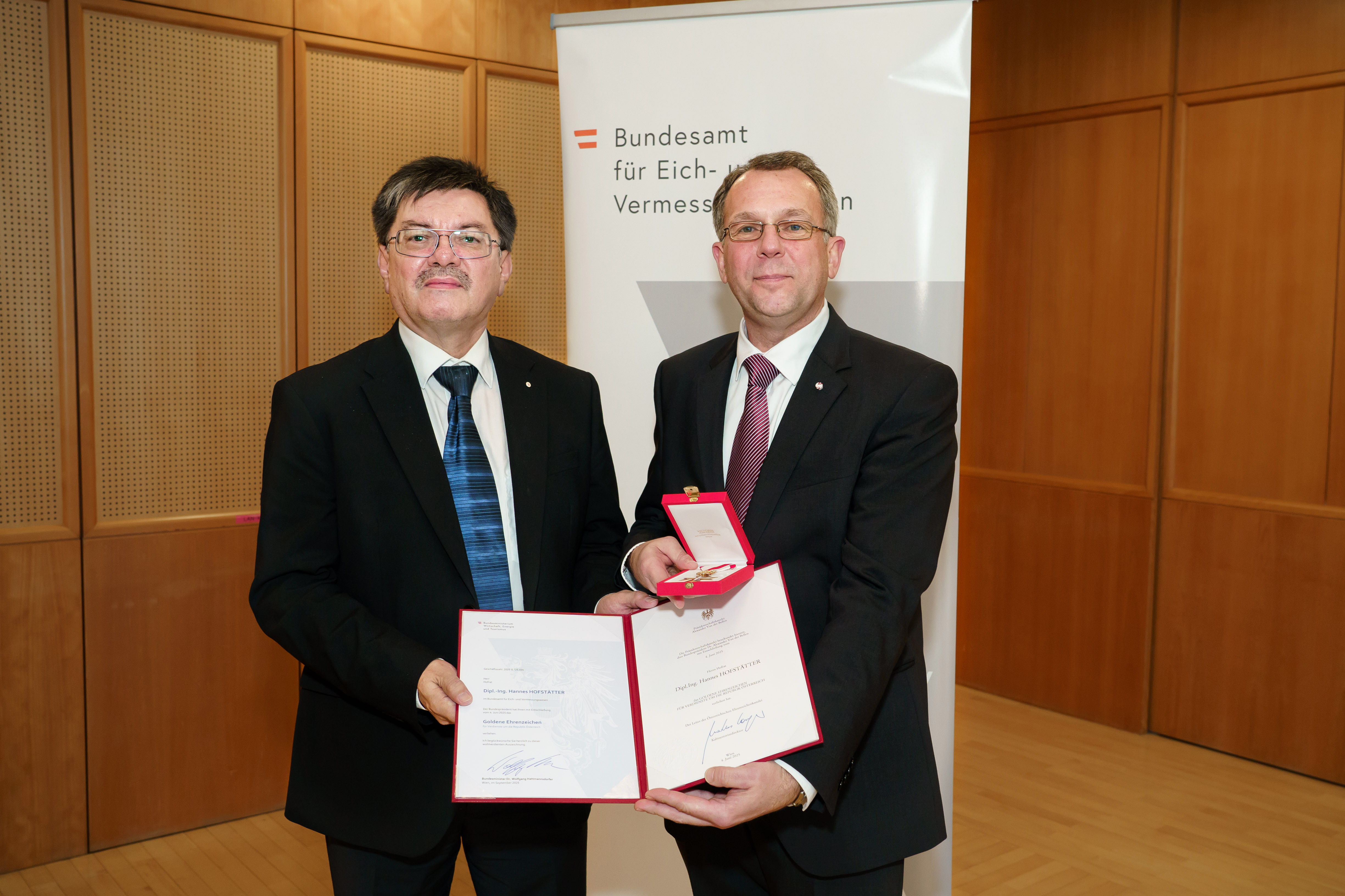 Durch seine grundlegenden Vorarbeiten und seine fachliche Verantwortung im Projekt zur Digitalisierung der Katasterarchive sowie durch seine kontinuierliche Mitwirkung an gesetzlichen und systemischen Weiterentwicklungen trug DI Hofstätter wesentlich zur Modernisierung des Katasterwesens bei. Dafür wurde ihm das Ehrenzeichen für Verdienste um die Republik Österreich zuerkannt.