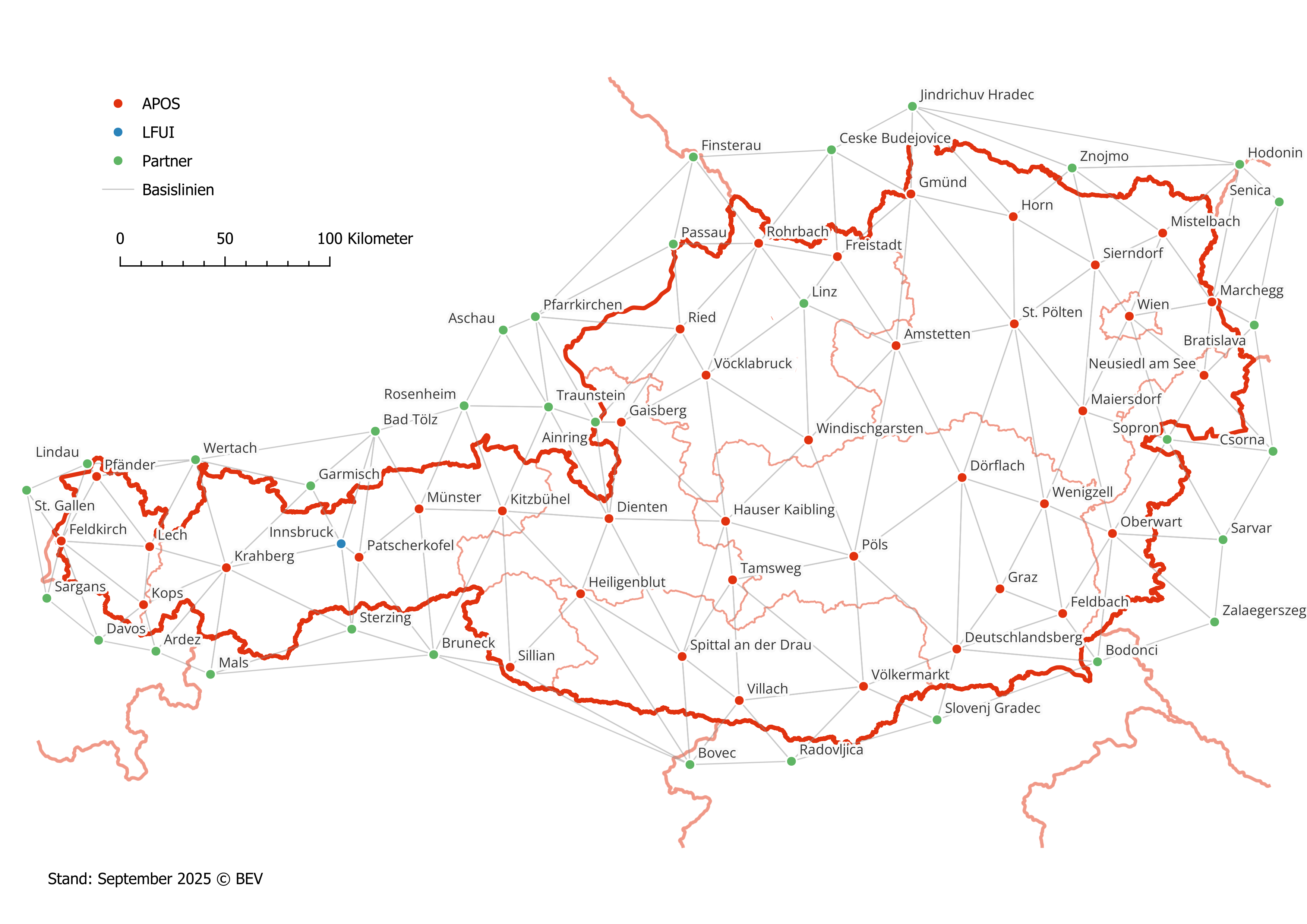 Durch Kooperationen mit allen benachbarten Vermessungsverwaltungen ist die Einbindung vieler grenznaher internationaler GNSS-Referenzstationen gewährleistet und APOS somit der Positionierungsdienst für Österreich, der fächendeckend und grenzüberschreitend homogene 3D-Koordinaten im Europäischen Terrestrischen Referenzsystem ETRS89 anbietet.